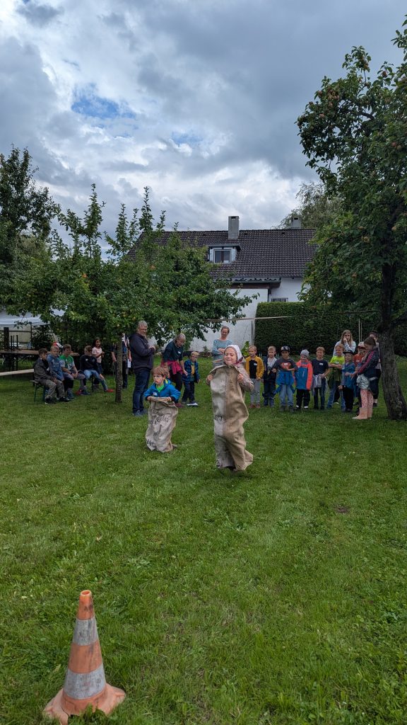 Am Freitag, den 01.08.2025 haben wir als Verein zum ersten mal beim Ferienprogramm in Blitzenreute mit unserem Aktionsangebot „Oberdorfer Kinder Highland Games“ teilgenommen. Das Programm wurde super angenommen und wir durften knapp 20 Kinder begrüßen. Bei durchwachsenem Wetter haben wir bei Bauer Siggi auf dem Bauernhof und rund um den Bauernhof verschiedene Spiele wie „Sackhüpfen“, „Dosenwerfen“, „Eierlaufen“, „Gummistiefelweitwurf“ oder „Baustammziehen“ durchgeführt. Zum Abschluß haben wir noch gemeinsam Würstchen gegrillt. Der Nachmittag war trotz durchwachsenem Wetter ein Erfolg.